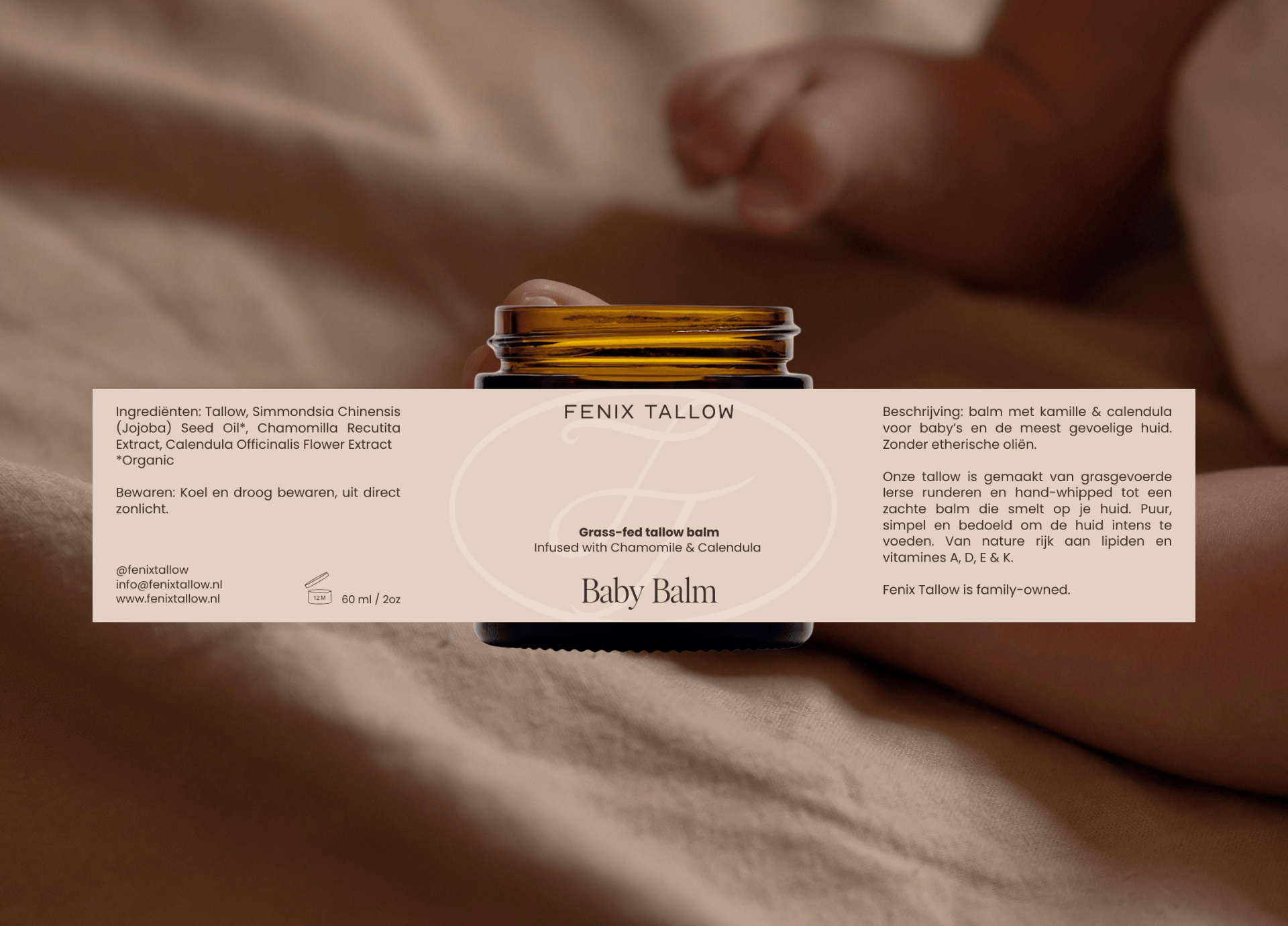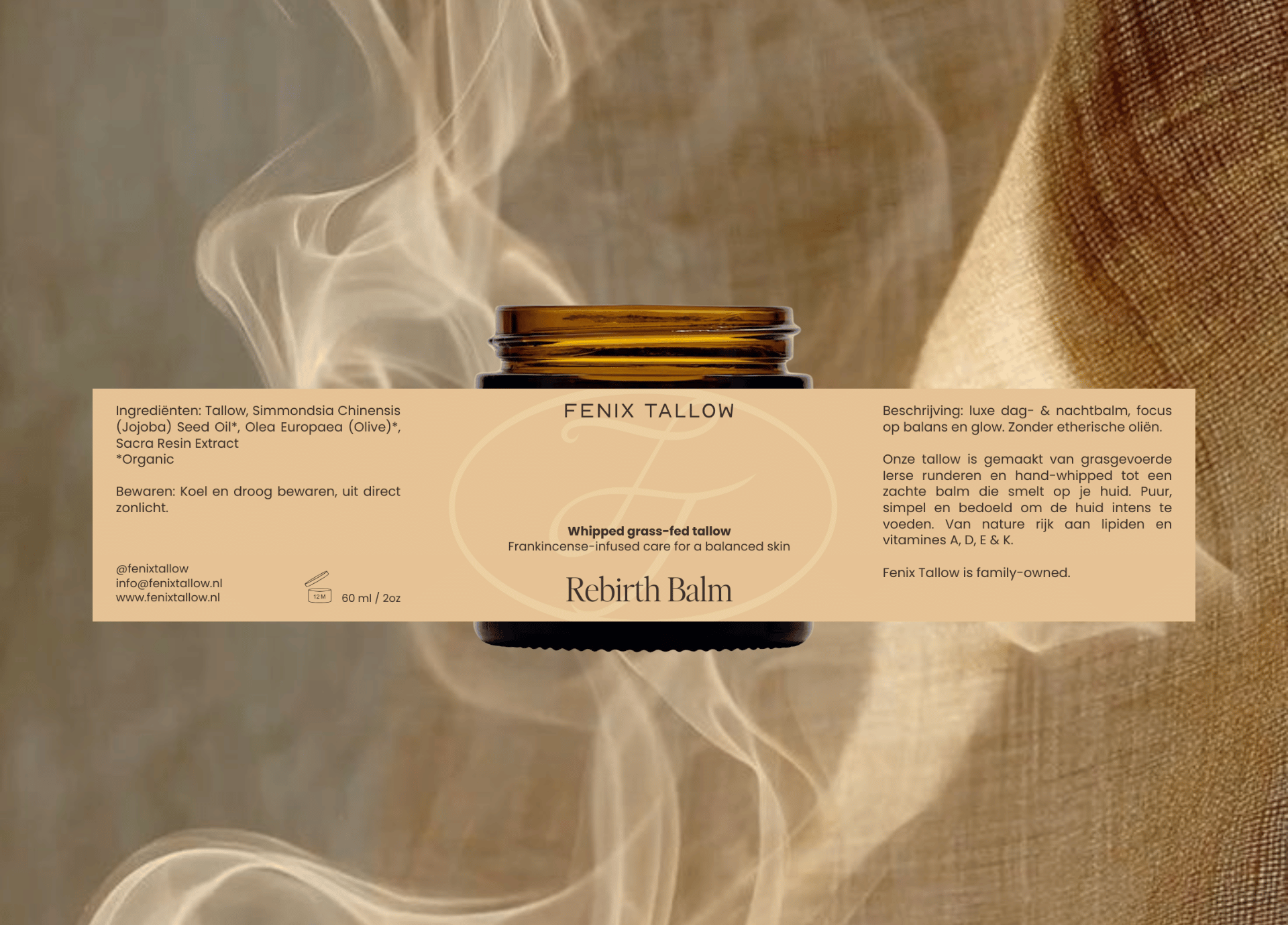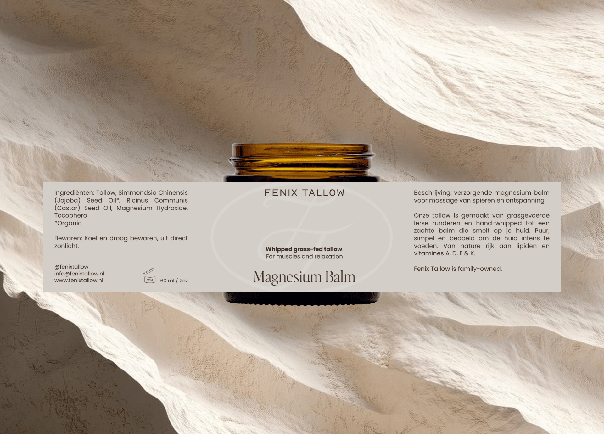 Voor Fenix Tallow werkte ik aan de merkidentiteit en verpakking, met een duidelijke richting: clean, premium en onderscheidend. We brachten focus aan in de merkpositionering (wat maakt Fenix anders dan “weer een natuurlijke balm?”), en vertaalden dat naar een visuele wereld die warmte, kwaliteit en vertrouwen uitstraalt.