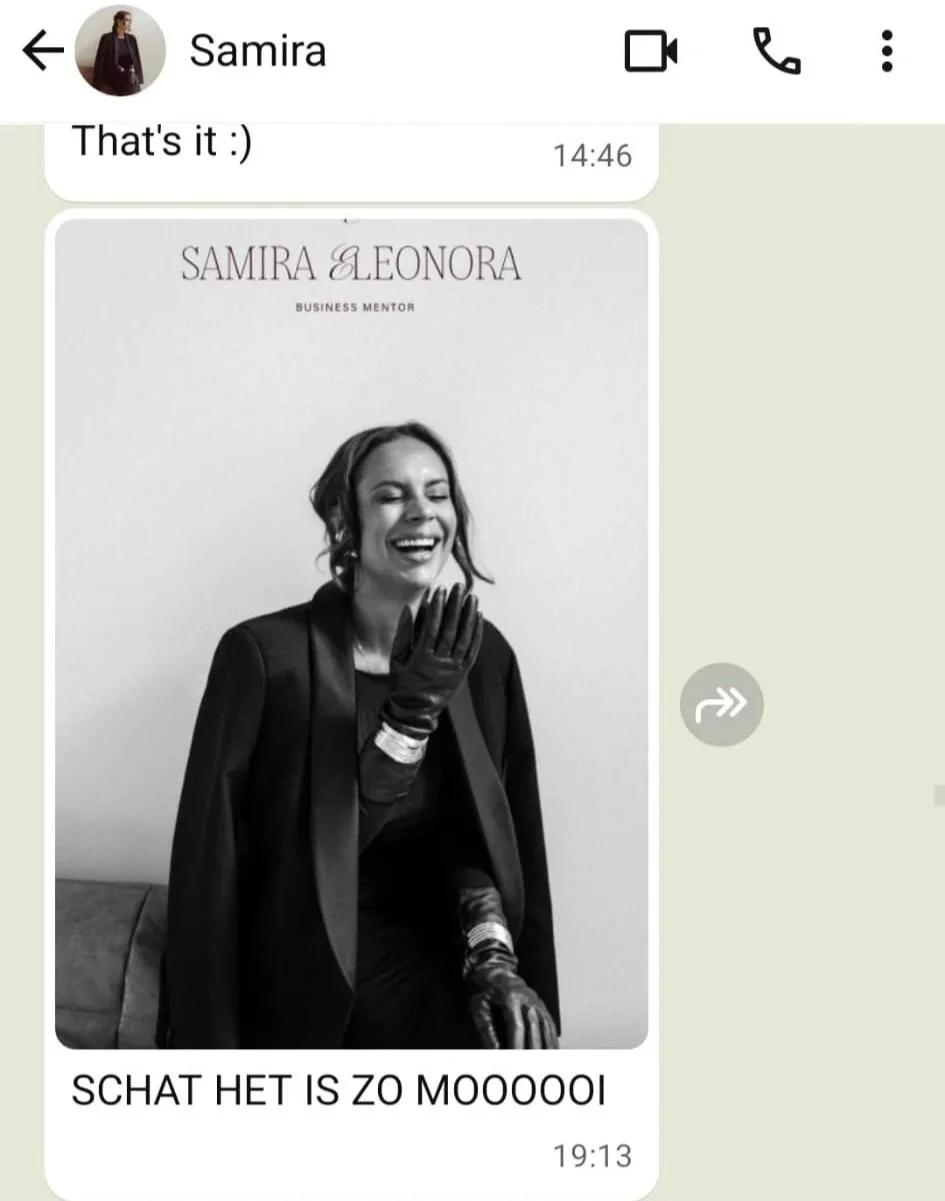 De rebranding gaf Samira een merk dat haar next level weerspiegelt. Ze voelde direct de shift in energie en die vertaalde zich ook in resultaten.